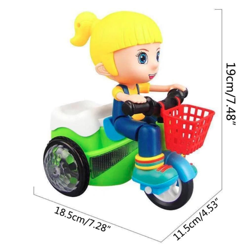 Веселый велик делает повороты и выполняет крутые трюки, а во время игры звучит веселая музыка и мигают яркие огни.