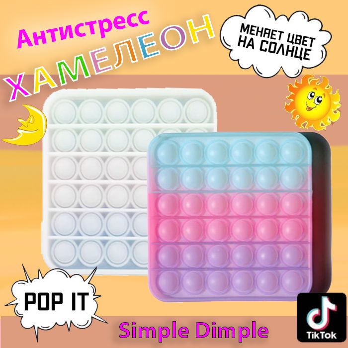 Ультафиолетовый POP IT меняет цвет на солнце 13x13x2см