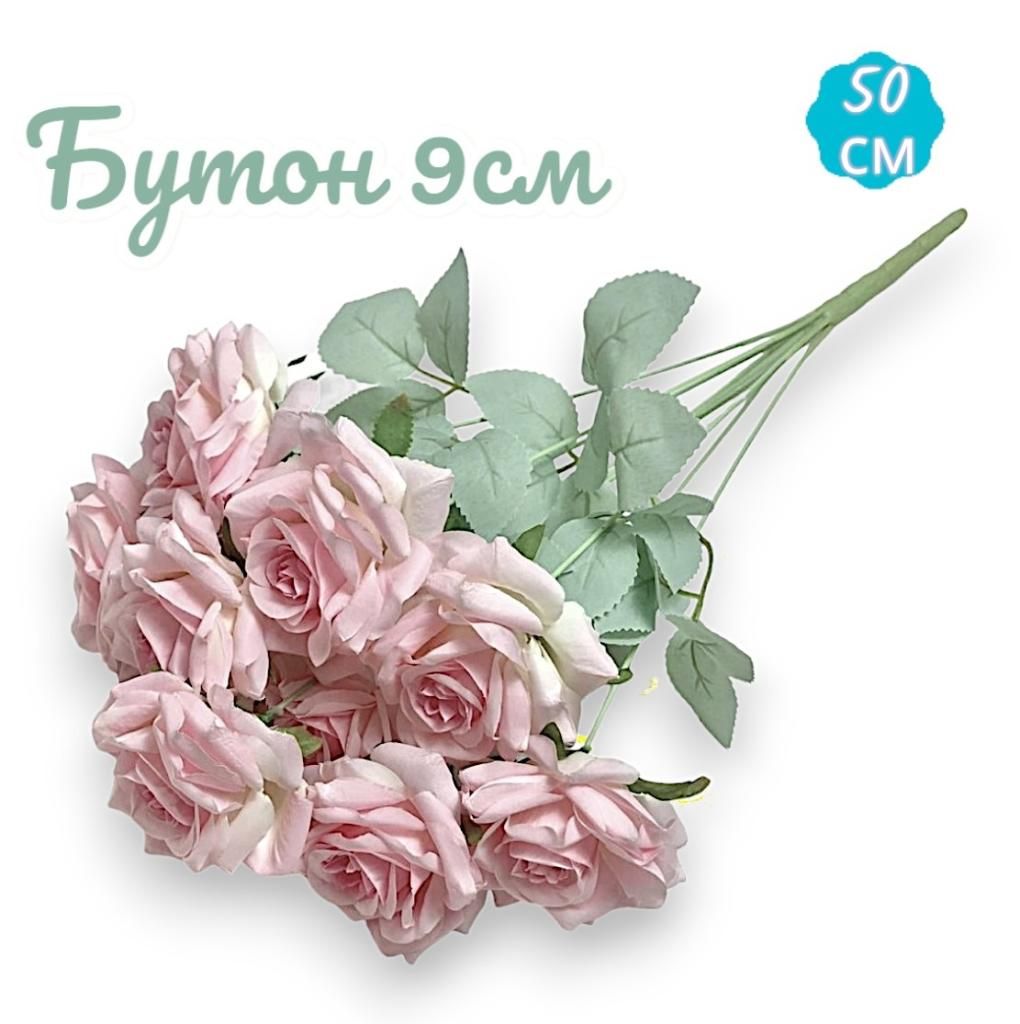 Розы светло-розовый букет 9 голов, 50см , бутон 9см.