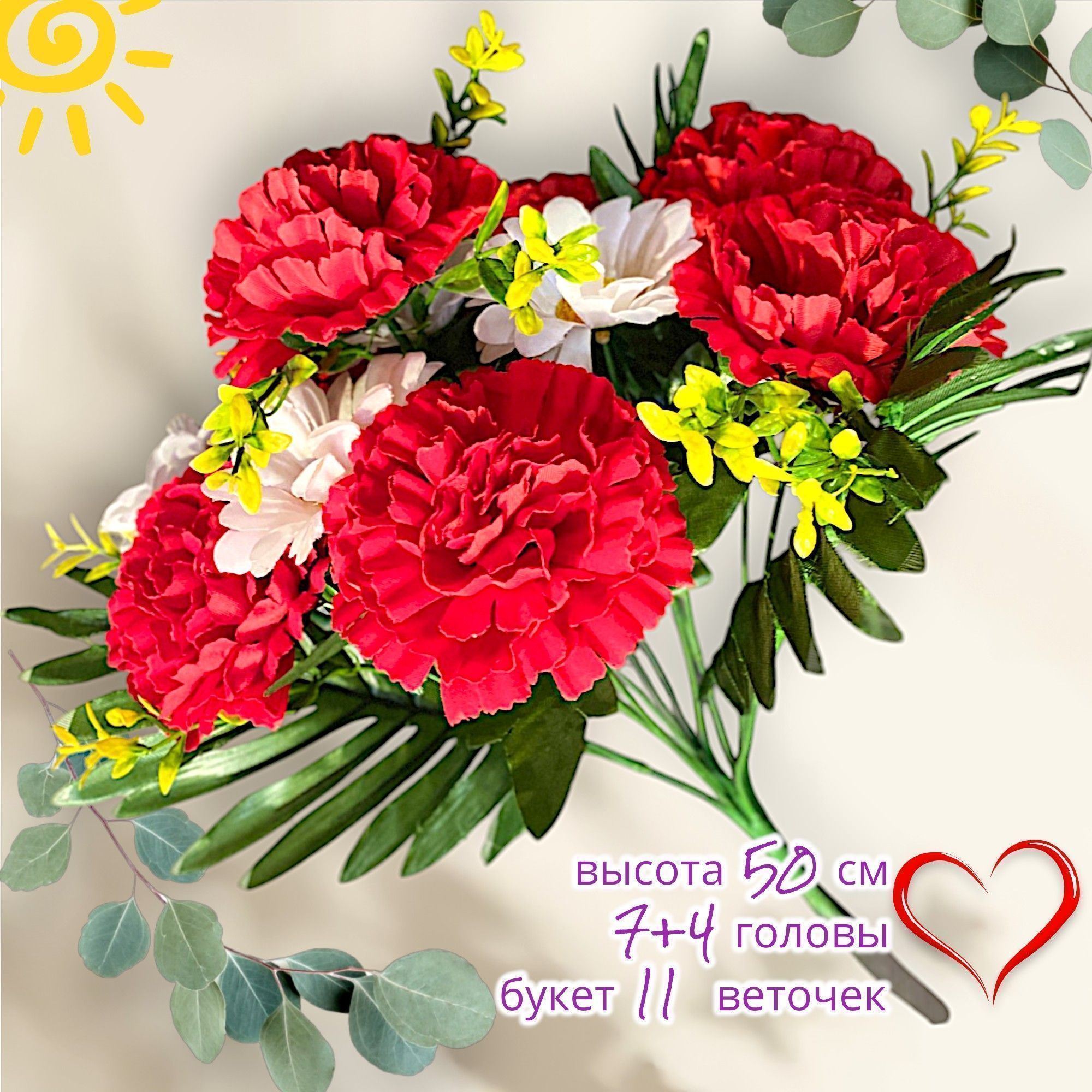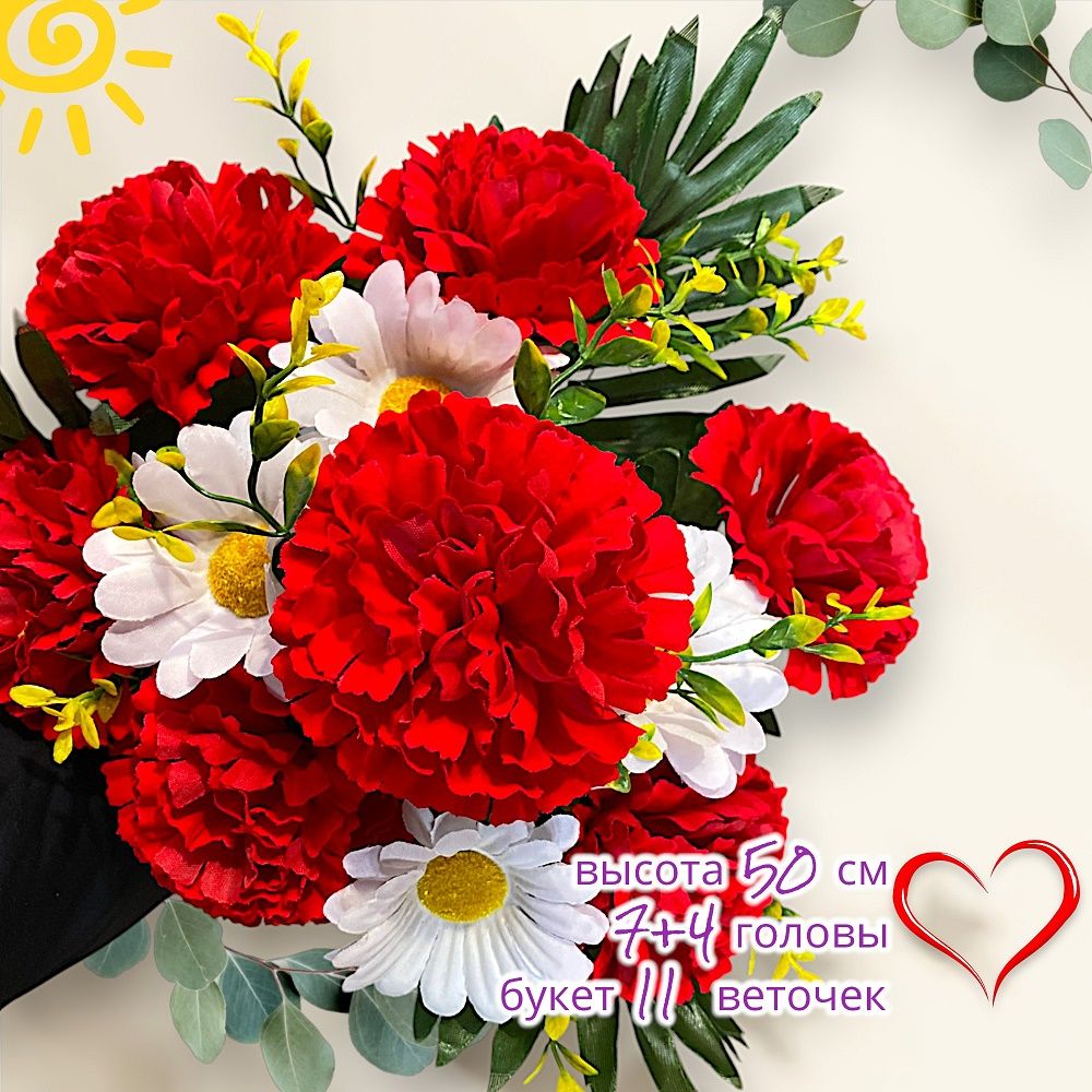 Букет гвоздики+ромашки 50см 7/4 бутона