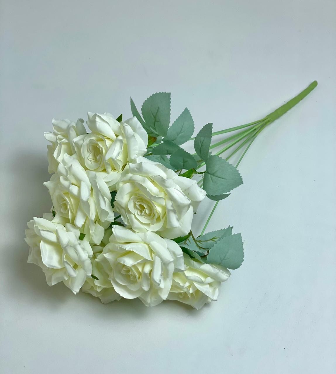 Розы молочные букет 9 голов, 50см , бутон 9см.