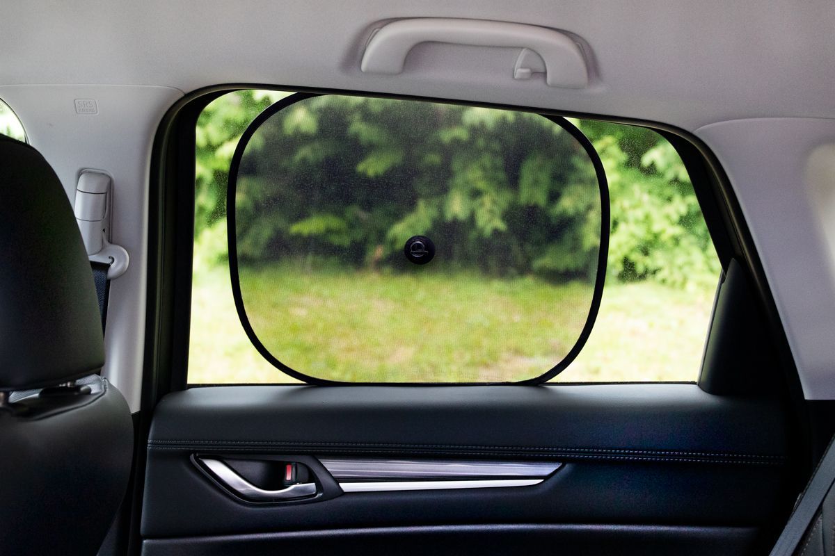 Шторки крепятся с помощью адаптированных присосок на боковые стекла машины. Преимущества: защищают пассажиров и обивку салона от прямых солнечных лучей.