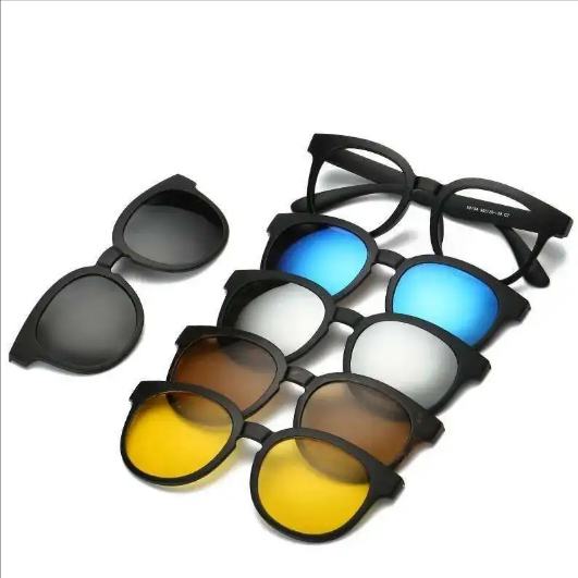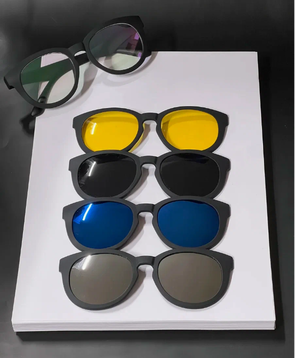 Универсальные очки 5 в 1 — это идеальное решение для тех, кто ценит стиль, удобство и практичность. В комплект входит одна оправа с прозрачными линзами и четыре сменные насадки на магнитной основе: