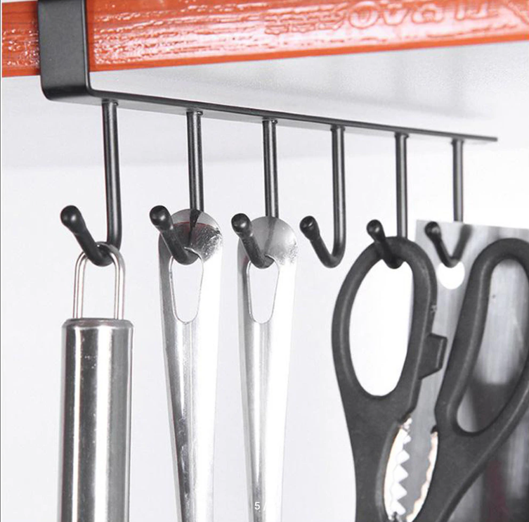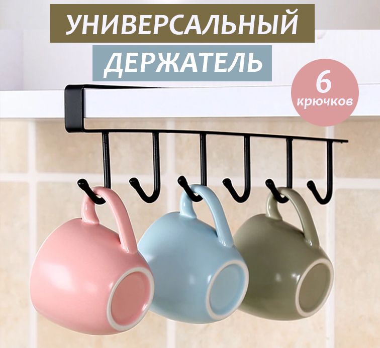 Держатель универсальный для полотенец, кухонный, 6 крючков,черный