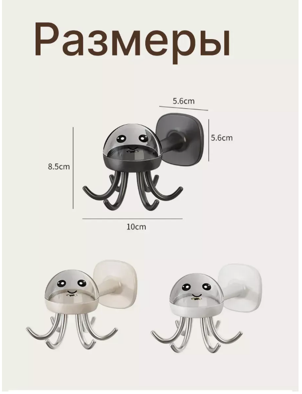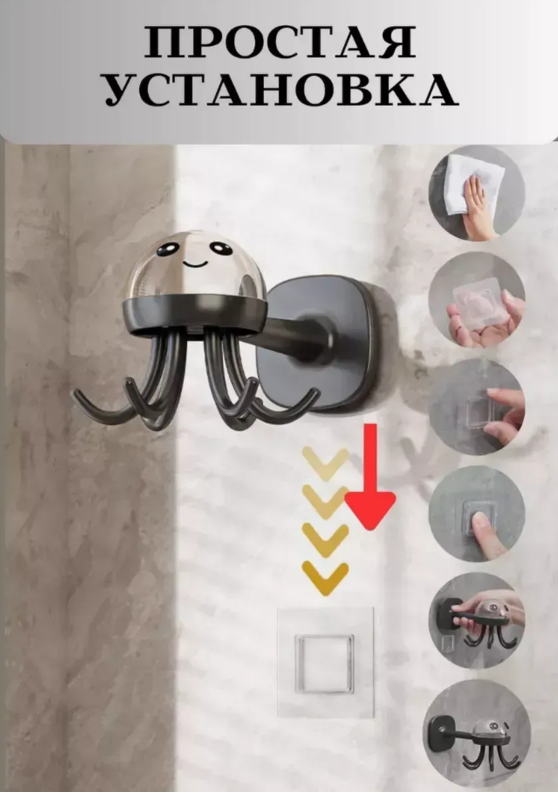 Эти многофункциональные крючки не только добавят креативности и оригинальности в ваш дом, но и обеспечат удобство и надежное крепление для различных предметов. Каждый крючок осьминога имеет специальный дизайн, который позволяет ему вращаться на 360 градусов. Это означает, что вы можете легко изменять угол для подвешивания губок, полотенец, мочалок, ложек и других кухонных принадлежностей, обеспечивая идеальное расположение для удобного доступа. Если у вас гардероб, то можно повесить, ремни, галстуки и так далее. Эти крючки осьминога не только имеют привлекательный внешний вид, но и обладают высокой прочностью. Они способны выдерживать вес до 3 кг без риска падения или повреждений. Благодаря этому, вы можете быть уверены в безопасности и надежности крепления ваших вещей. Более того, самоклеящаяся основа универсального держателя позволяет легко установить их на различных поверхностях, таких как стекло, пластик, металл и другие гладкие поверхности. Больше не нужно беспокоиться о сверлении отверстий. Просто приклейте самоклеящиеся крючки осьминога в удобном для вас месте и наслаждайтесь их практичностью. Независимо от того, нужны ли вам крючки для кухни, ванной комнаты или других помещений, наши самоклеящиеся держатели осьминога будут отличным решением.
