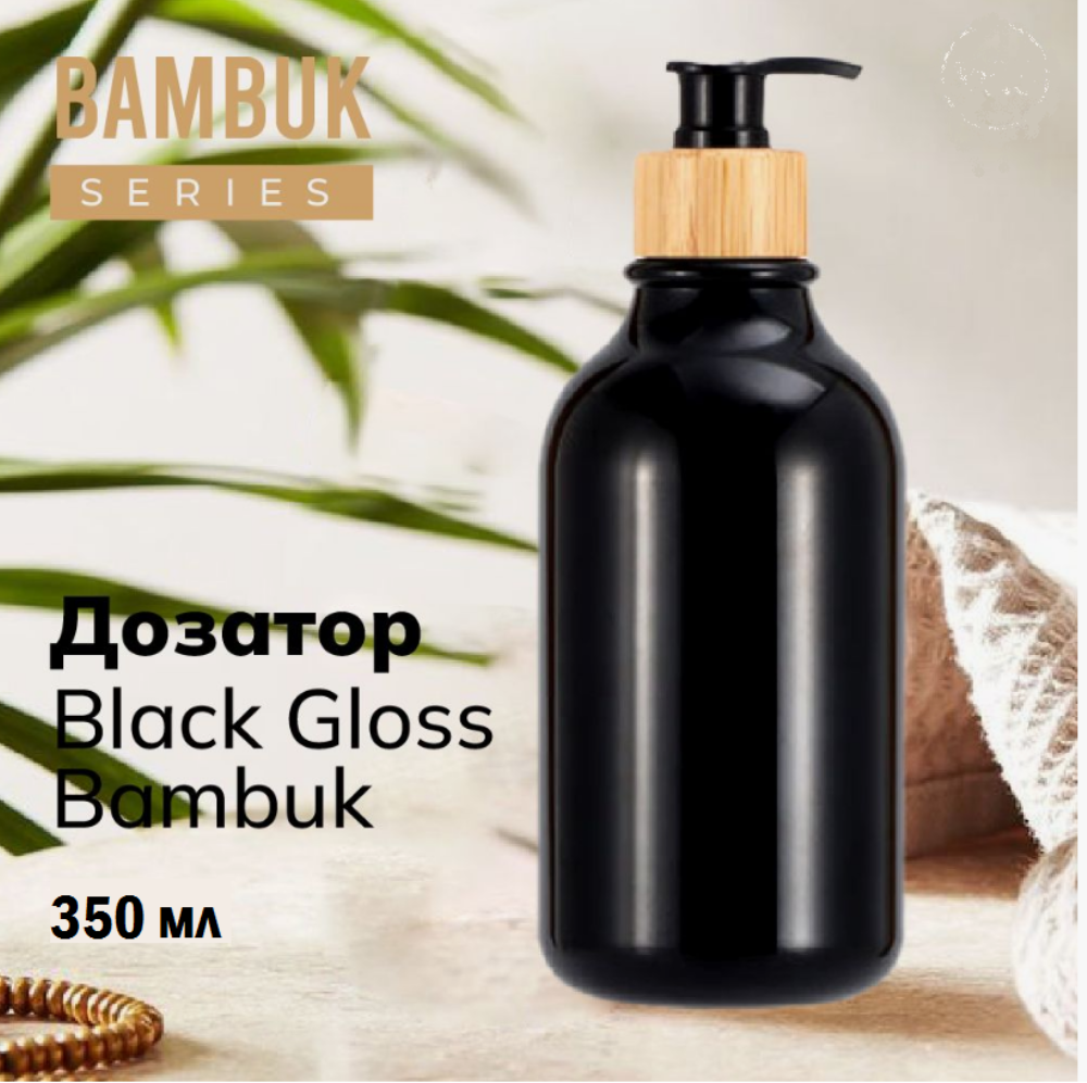 Диспенсер бамбуковый для мыла и лосьона, 350 мл, черный