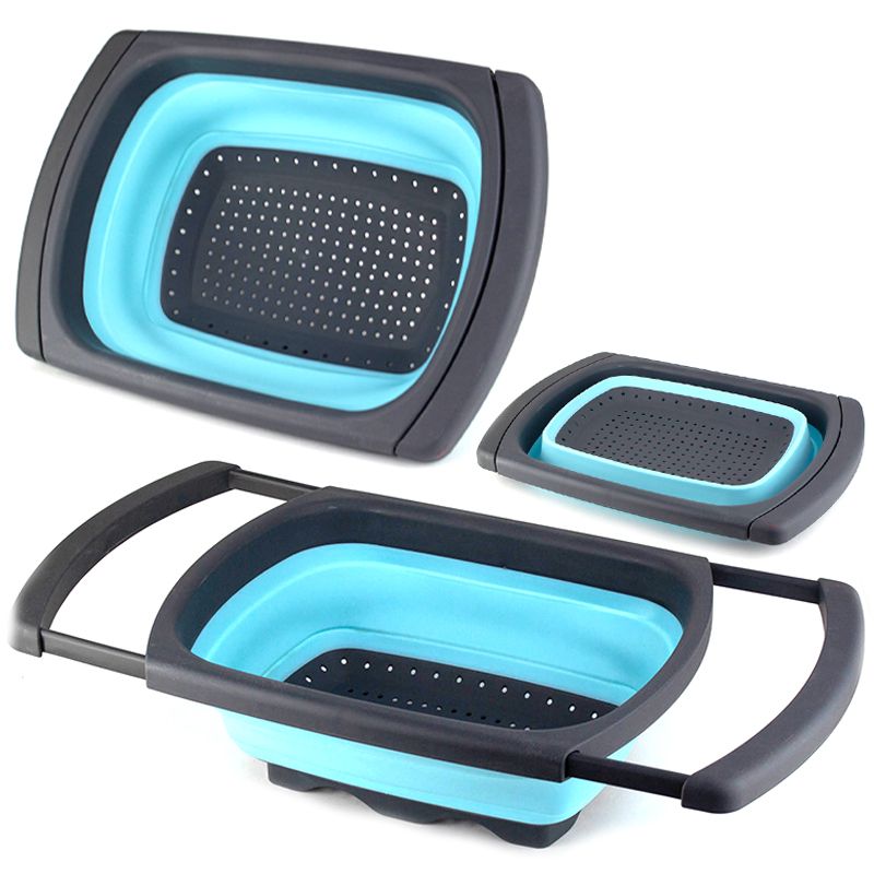 Дуршлаг предназначен для использования над мойкой, поскольку имеет для этого специальные раздвижные ручки. Очень удобен для мытья фруктов, овощей и зелёного салата. Изделие сделано из силикона и специального пластика, который на 100% гигиеничный, гипоаллергенный и безопасный для здоровья.
