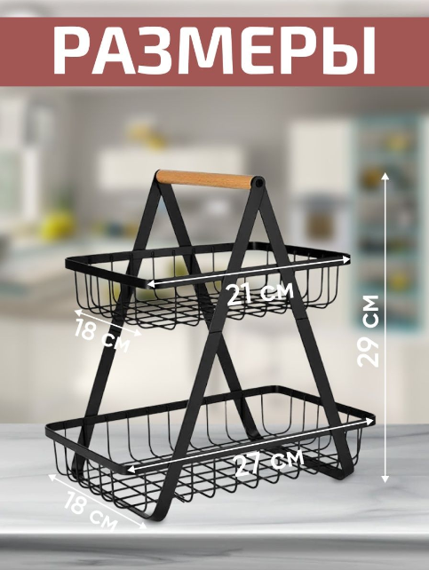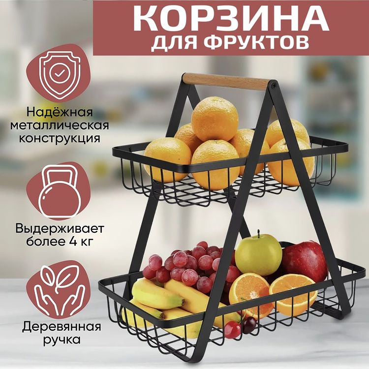 Металлическая стильная 2х -ярусная корзина фруктовница - идеальное дополнение к вашему интерьеру и декору. Черная корзина выполнена в стиле лофт. Корзина для хранения прекрасно выполняет функцию сервировки стола не только столового, но и рабочего.