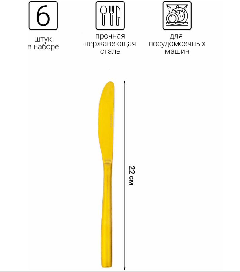 Набор ножей 6шт 22см золотое напыление, нержавеющая сталь
