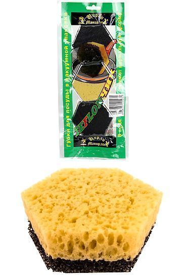 В процессе использования отсутствует неприятный запах. Губка состоит из двух слоев, один пенообразующий из мягкого крупнопористого пенополиуретана другой жесткий из ретикулированного пенополиуретана, позволяющий мыть любые поверхности, в том числе и деликатные без повреждений.