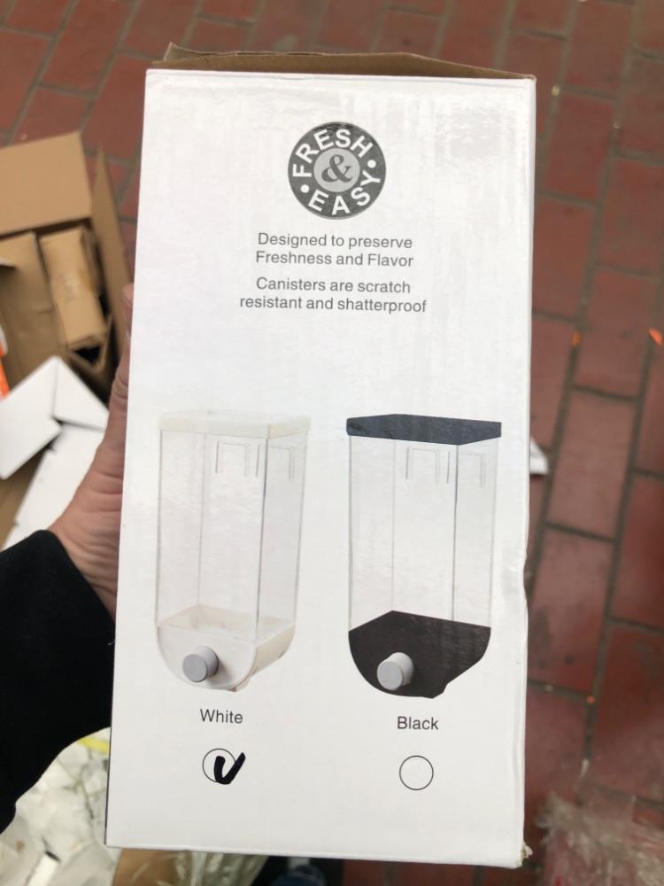 Настенный пищевой контейнер с дозатором объёмом 1 литр позволяет значительно экономить кухонное пространство. Крупы, кофе, сахар и многое другое можно разместить в этих ёмкостях.