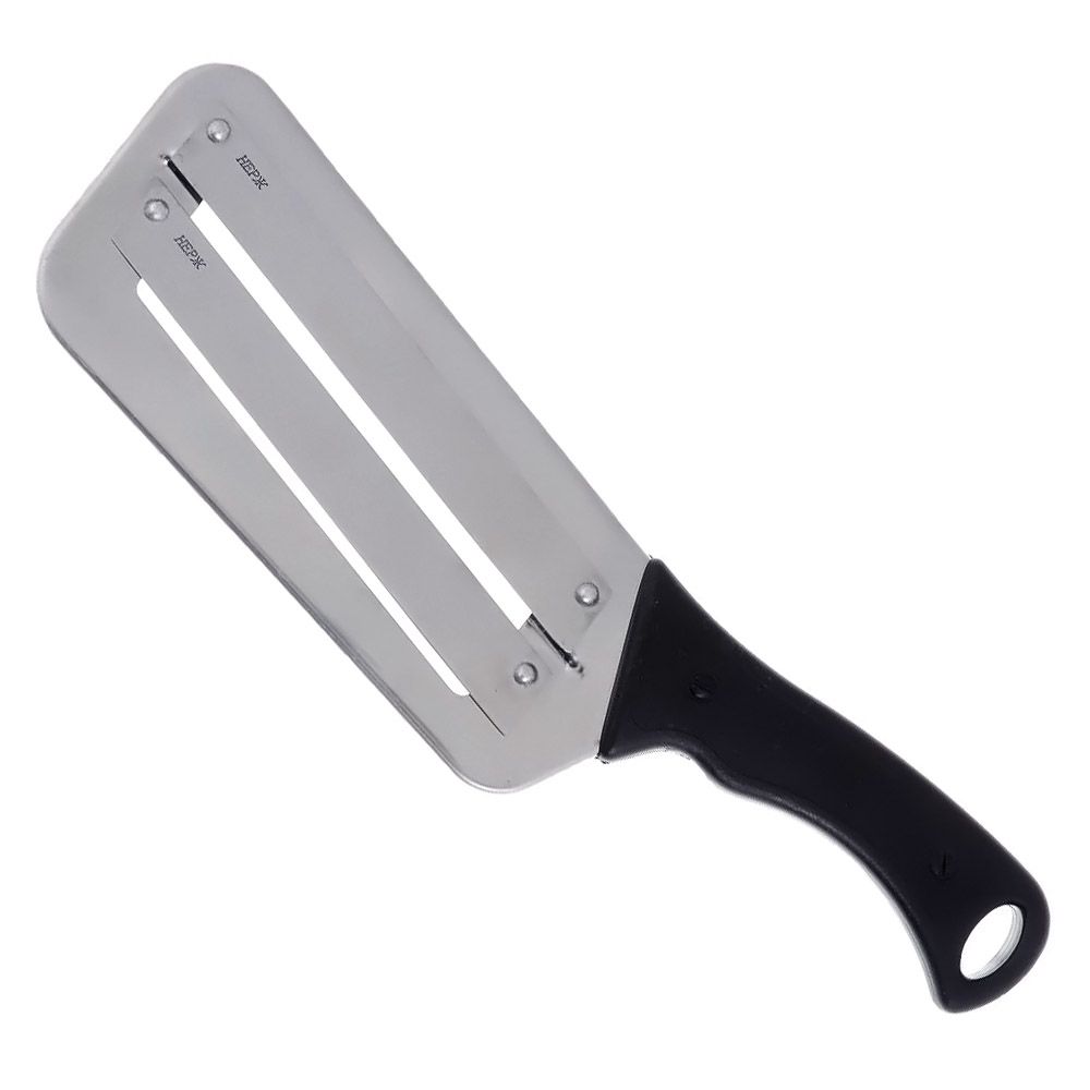 Нож для резки овощей изготовлен из высококачественной нержавеющей стали. Двойное лезвие обеспечивает быструю резку овощей, нарезка получается тонкой, ровной и аккуратной. Лезвие имеет высокую твердость для долголетней службы. Рукоятка изделия выполнена из пластика, она удобно лежит в руке и обеспечивает комфортную резку. Нож для резки овощей пригодится на любой кухне, он упросит приготовление салатов и нарезку овощей для жарки.