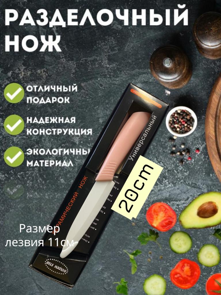 Нож керамический, кухонный, универсальный, ручка soft touch, 20см