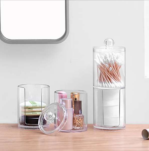 В комплект органайзера входят: органайзер для ватных дисков, органайзер для ватных палочек и крышка. Это обеспечивает дополнительную защиту для аксессуаров и предотвращает их рассыпание.