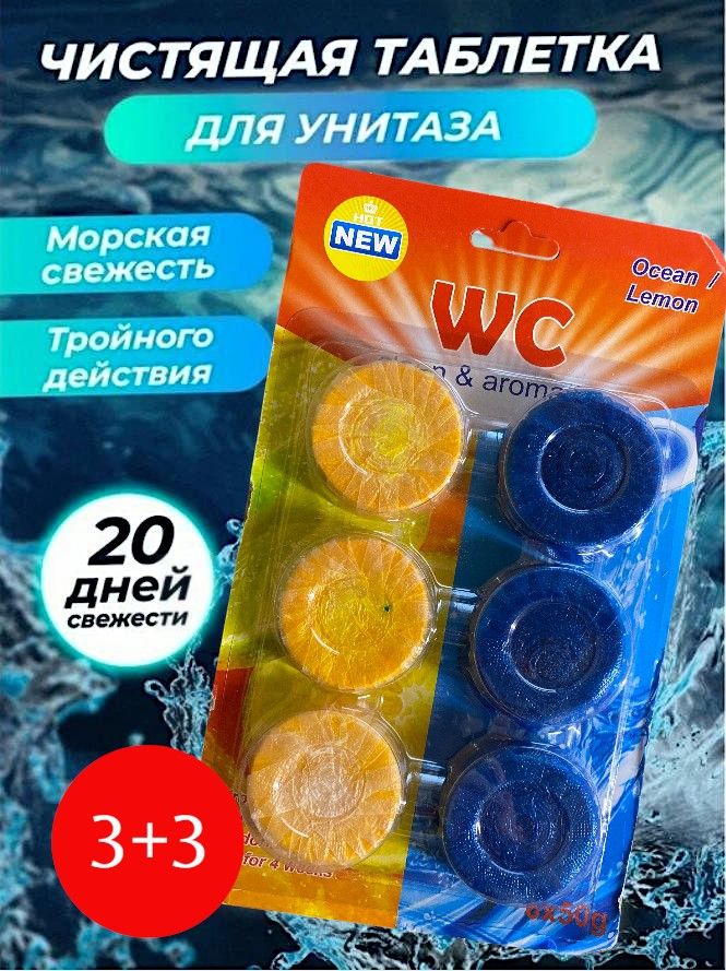 Таблетки для унитаза 6 шт, на 20-30 дней
