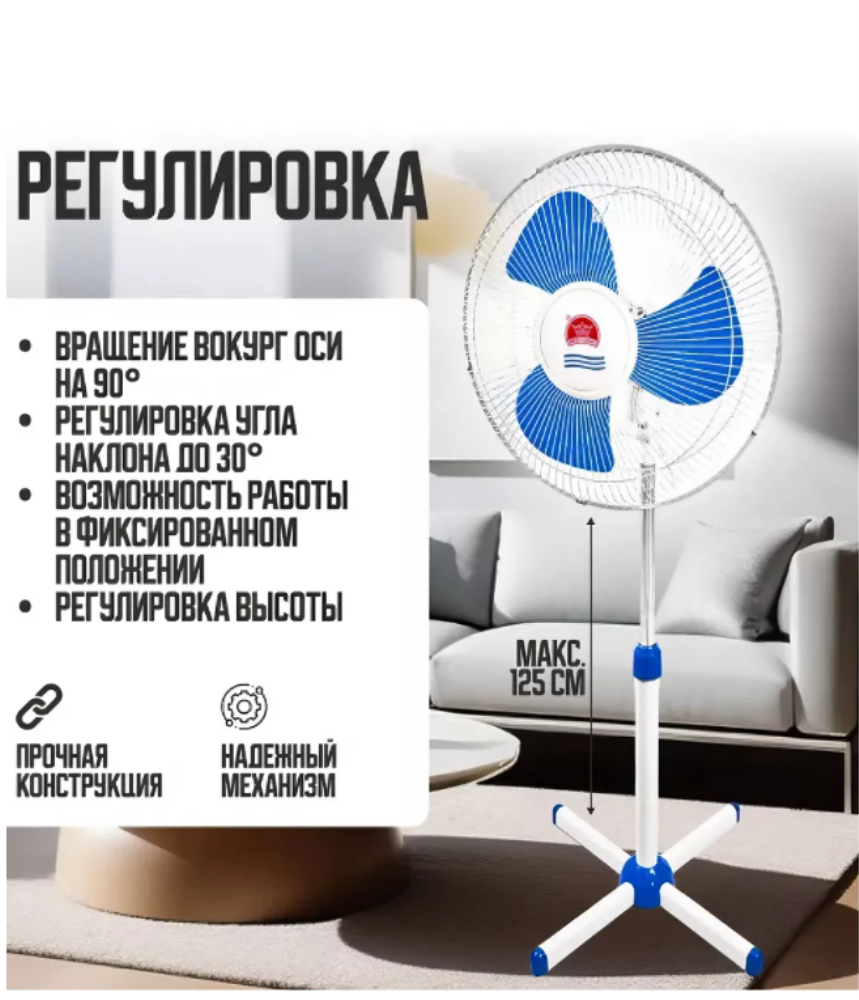 Доп. опции вентилятора: функция поворота; регулировка высоты; регулировка скорости