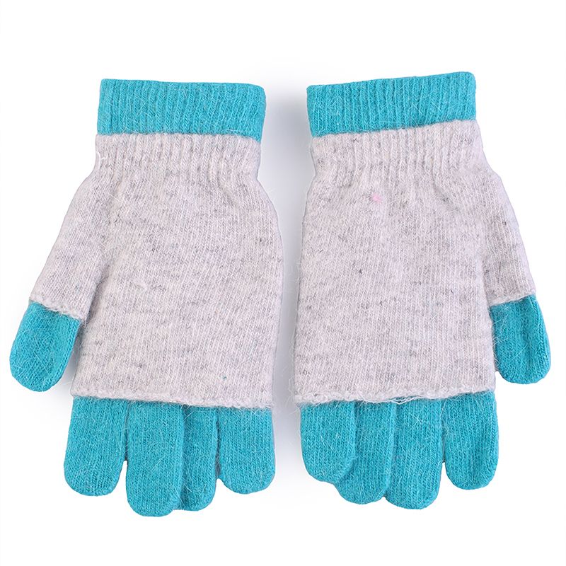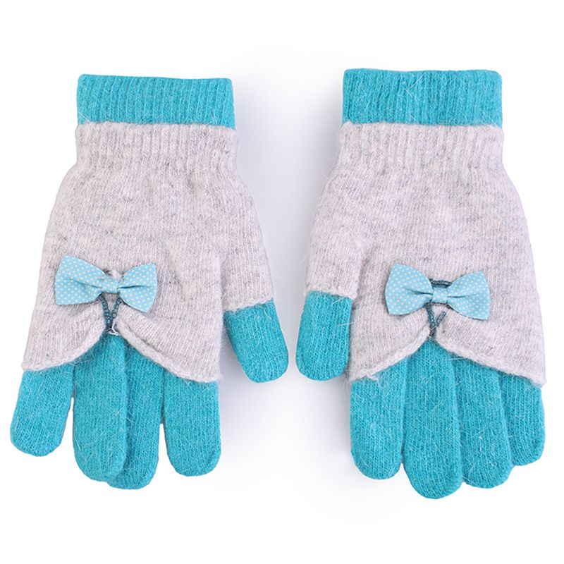 Перчатки трикотажные детские двойные, украшенные бантиком.