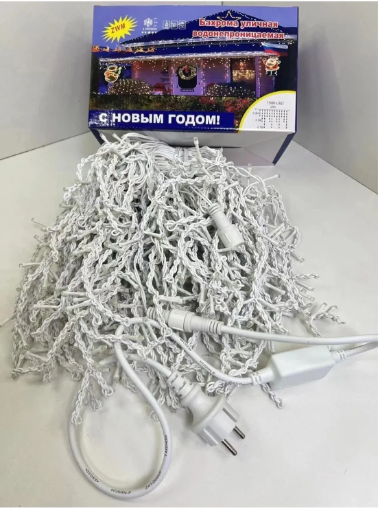 Гирлянда Бахрома 25х0,6м холодно белое мерцающее свечение,белый провод