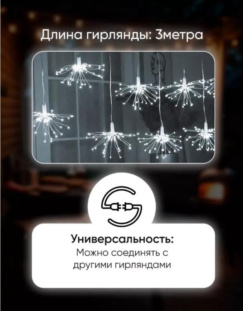 Популярная Гирлянда Фейерверк 3 метра, 220V, холодное свечение