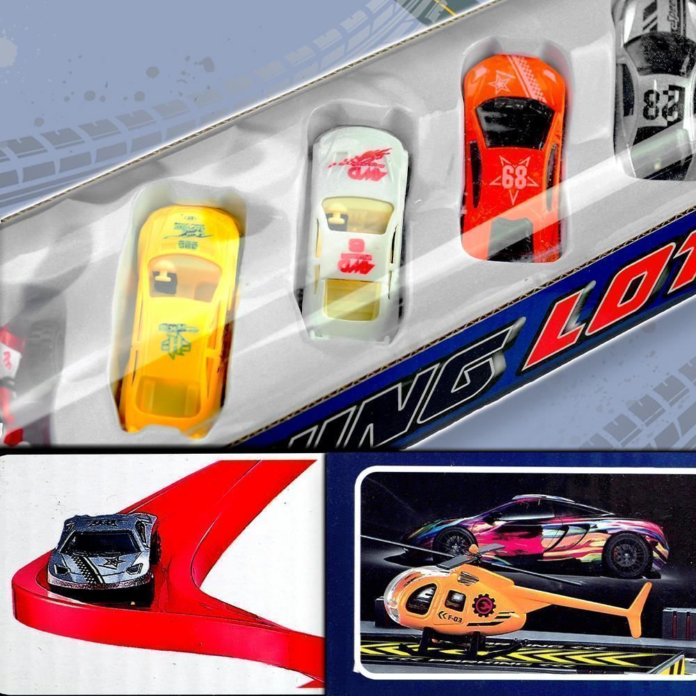 Набор включает в себя 41 элемент. Машинки, вертолёт, детали для сборки.