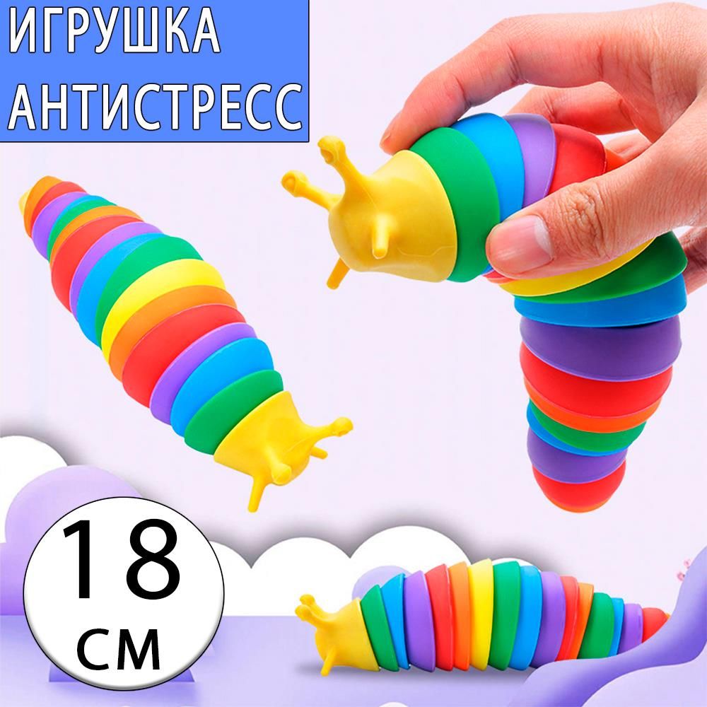 Слизень разноцветный Finger Slug - это игрушка антистресс, обладающая уникальными свойствами, благодаря которым взрослые и дети снимают усталость дня, нервное напряжение, стрессовое состояние, посредством тактильных ощущений. Очень занятная игрушка для снятия напряжения. Игрушки такого плана являются сильнейшими антидепрессантами, воздействие которых, похоже на медитацию. Finger Slug издает характерный приятный звук. Слизень очень гибкий. Его можно использовать как головоломку. Он разборный. Игрушка имеет сферическую форму деталей, что позволяет скручивать ее в любом положении как вам захочется. Можно приобрести несколько штук и собрать свой уникальный цвет, так как игрушка разбирается. Размер слизня - 18 см.