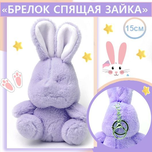 Игрушка-брелок Спящий Зайка 15 см, сиреневый