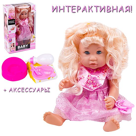 Кукла интерактивная говорящая + аксессуары в розовом платье