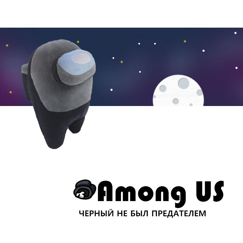 Мягкая игрушка Among US Черная размер см 20x15x11