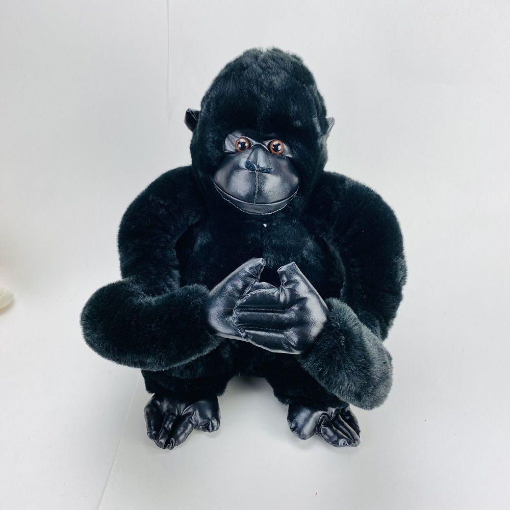 Черная горилла в сидячем положении сделана с высокой степенью детализации, поэтому обезьяна очень похожа на настоящего дикого примата.