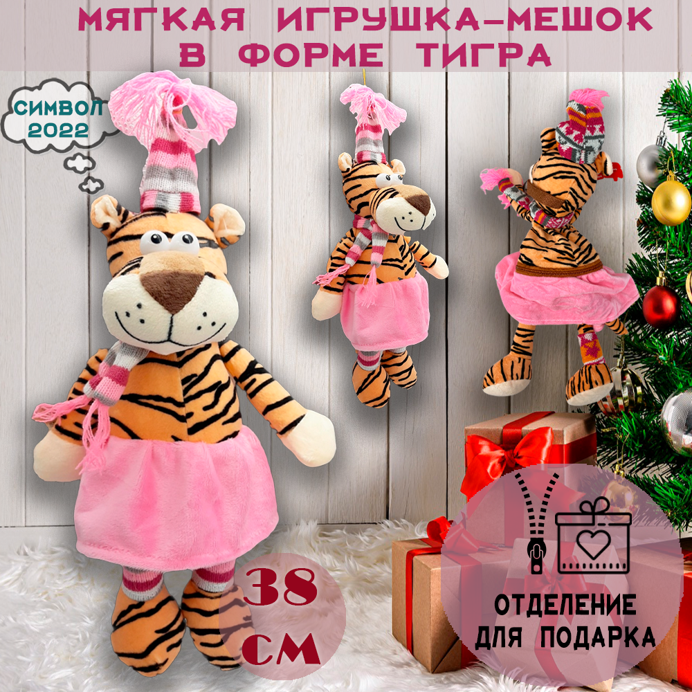 Мягкая игрушка тигренок. Игрушка-сумочка создана для того, чтобы ставить в нее какие-будь подарки (конфеты,вкусности), что приятно порадует и удивит любого. Является символом 2022 года. Станет отличным подарком вашему ребенку. Высота игрушки 38 см.