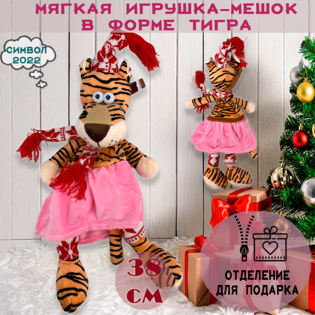 Мягкая игрушка тигренок. Игрушка-сумочка создана для того, чтобы ставить в нее какие-будь подарки (конфеты,вкусности), что приятно порадует и удивит любого. Является символом 2022 года. Станет отличным подарком вашему ребенку. Высота игрушки 38 см.