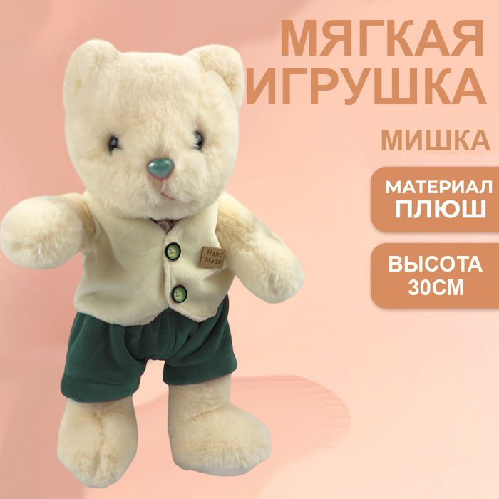 Мягкая игрушка Мишка в бирюзовом костюме 30см