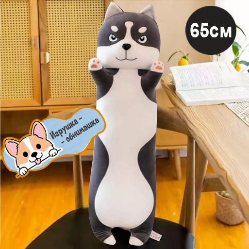 Мягкая игрушка подушка обнимашка ХАСКА, пес батон, 65 см