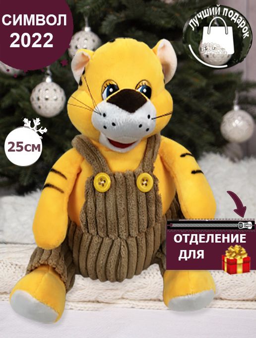 Сумка игрушка для новогодних подарков Тигр,Символ года 2022, 20x20x25см