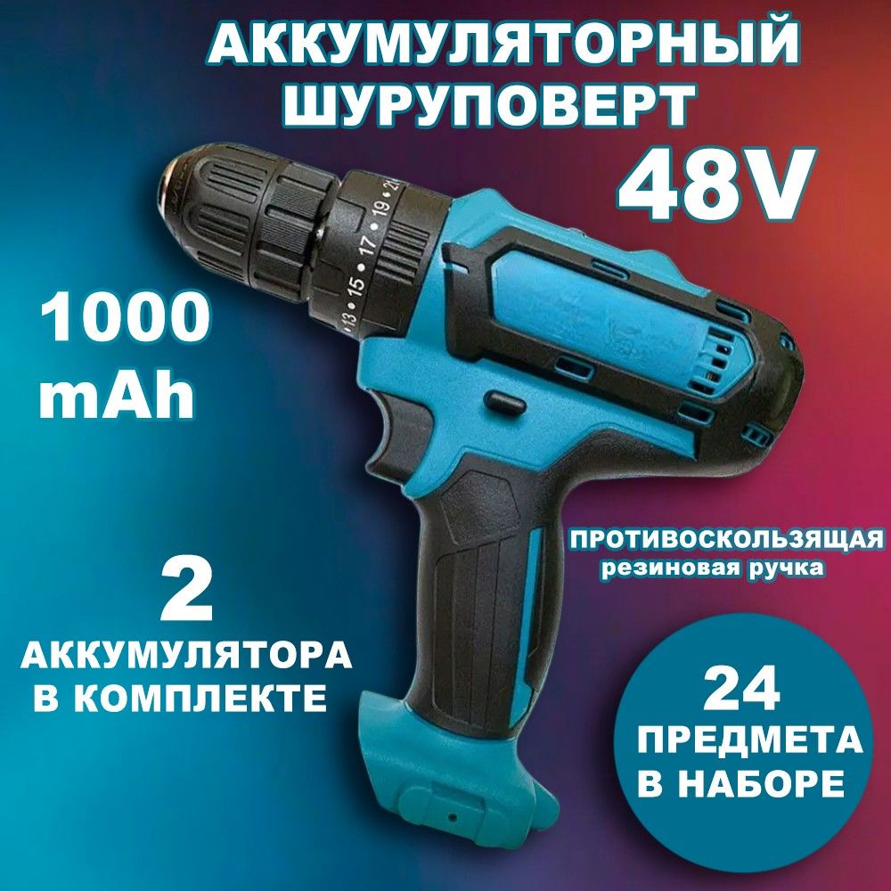 Дрель, шуруповерт 48V с ударным механизмом, шуруповёрт 1000 mah