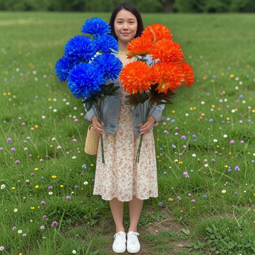 Искусственные цветы, высокий букет с большими шариками, 7 голов
