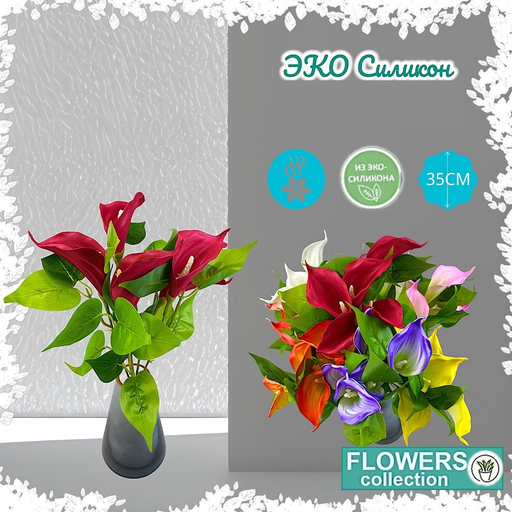 Калла красная, 5 бутонов 35см, ЭКОсиликон