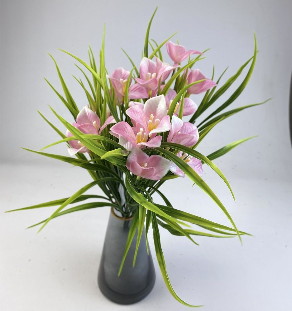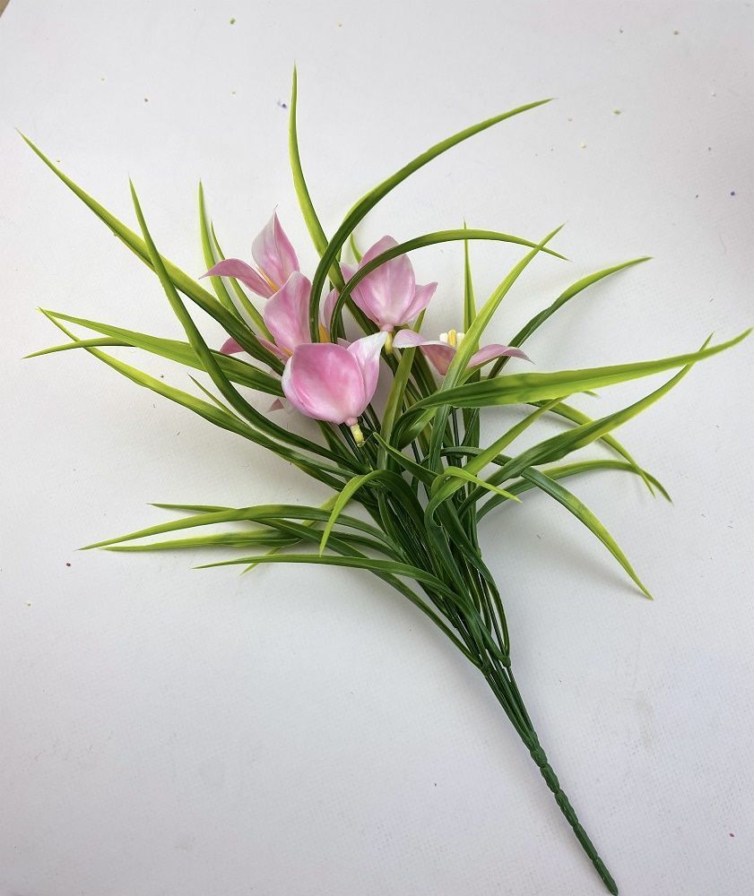 Калла розовая букет 7 веточек 45см, пластик