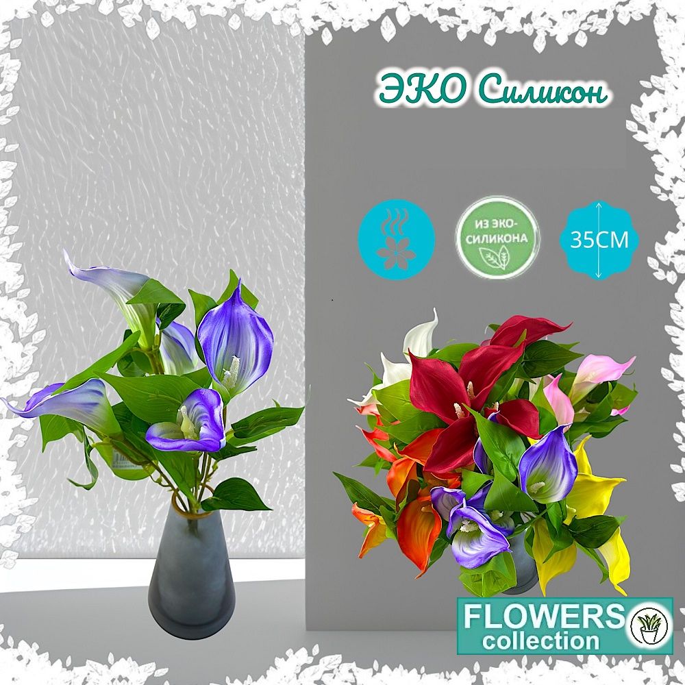 Калла сиреневая 5 бутонов 35см, ЭКО силикон