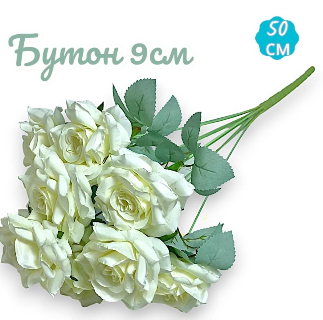 Розы молочные букет 9 голов, 50см , бутон 9см.