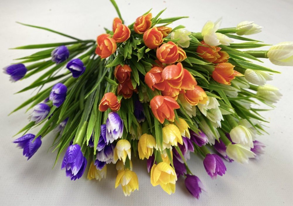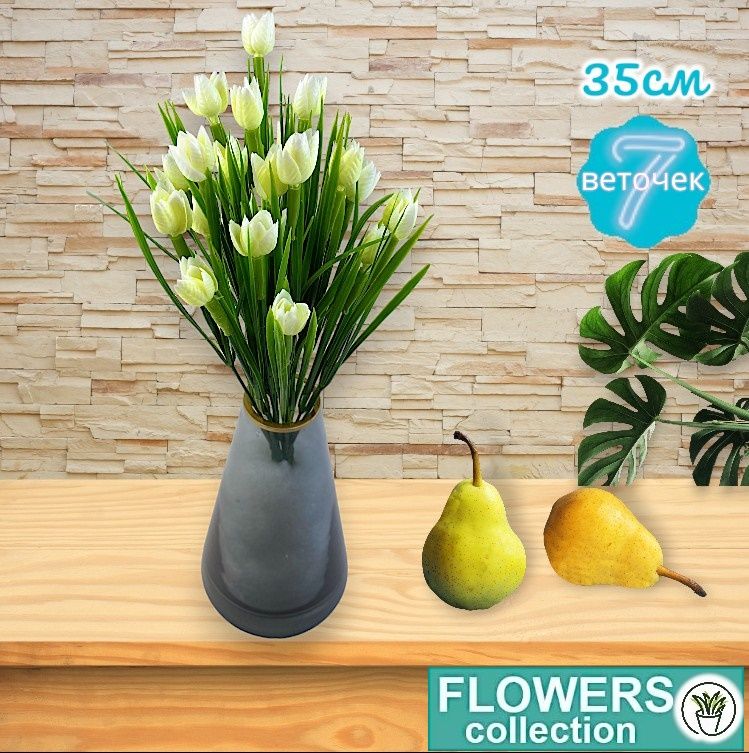 Тюльпаны белые, микро, 7 веточек 35см, пластик