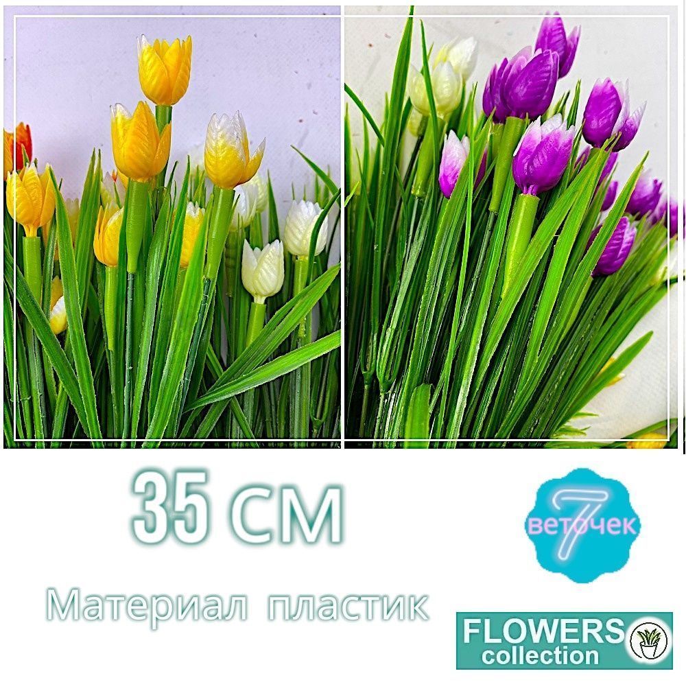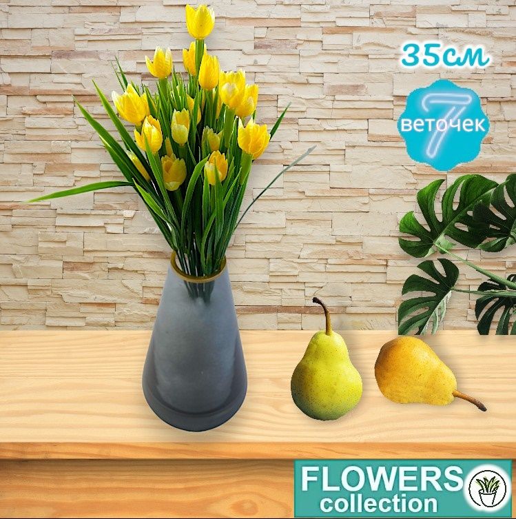 Тюльпаны желтые, микро, 7 веточек 35см, пластик