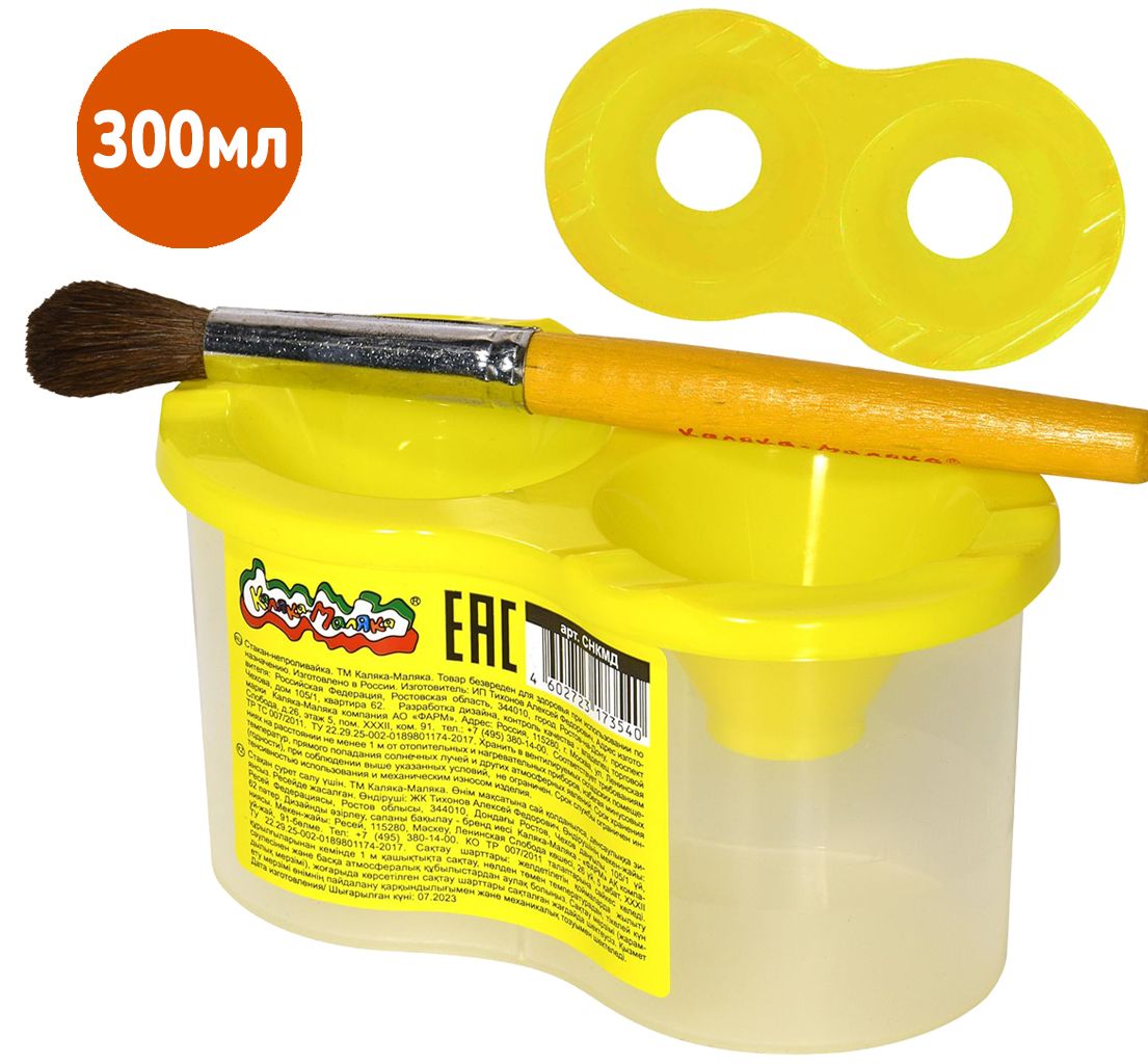 Непроливайка выполнена из прочного и качественного пластика. Крышка имеет яркий желтый цвет, который привлечет внимание ребенка и сделает творческий процесс еще интереснее.