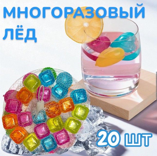 Многоразовый лёд для охлаждения напитков "Кубики" 20шт, ~2,5см