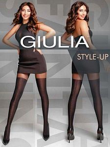 Описание: Колготки GIULIA STYLE-UP 60 model 4 – стильные плотные эластичные 60 DEN плотности колготки, серии FASHION LINE. Имитирующие чулки-ботфорты, декорированные надписью. Колготки комбинированные по плотности - плотные непрозрачные в области чулка, и прозрачные в верхней части бедра и на торсе.