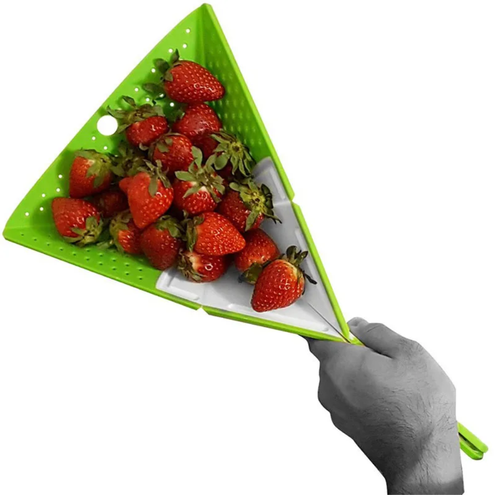 Складывается, чтобы образовать изогнутый Дуршлаг на одном конце для полоскания пищи