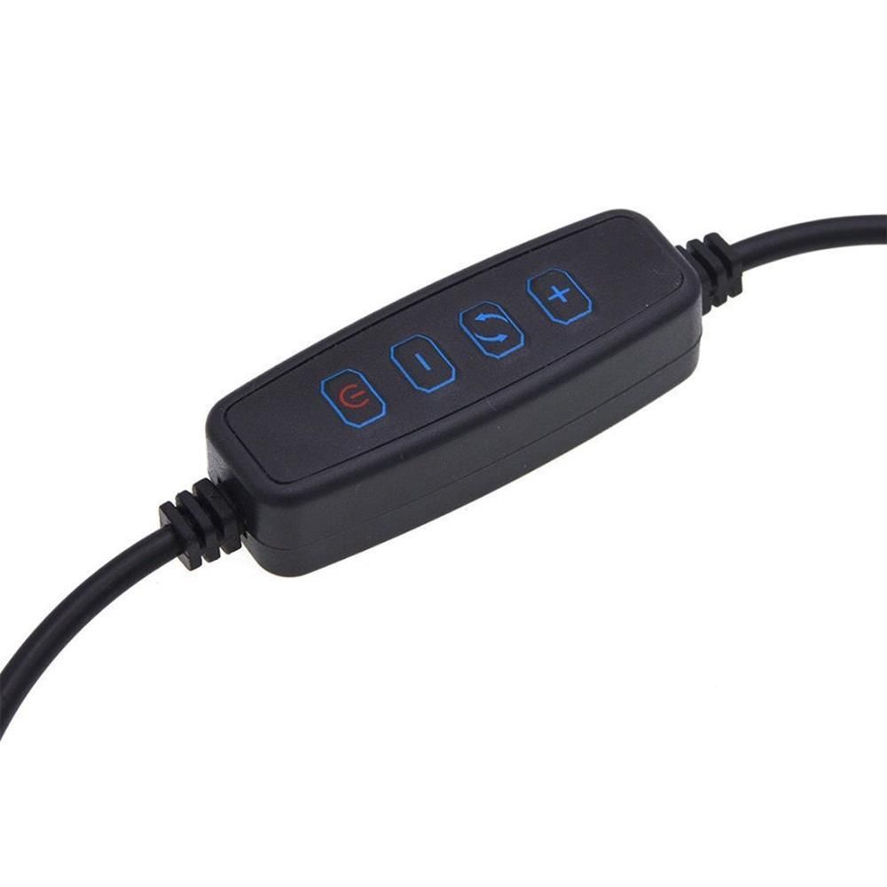 Кольцевая LED лампа имеет три режима типа освещения (теплый, холодный, комбинированный свет) и плавную регулировку яркости света.
