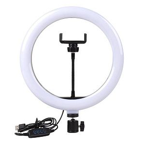 Кольцевая LED лампа имеет три режима типа освещения (теплый, холодный, комбинированный свет) и плавную регулировку яркости света.
