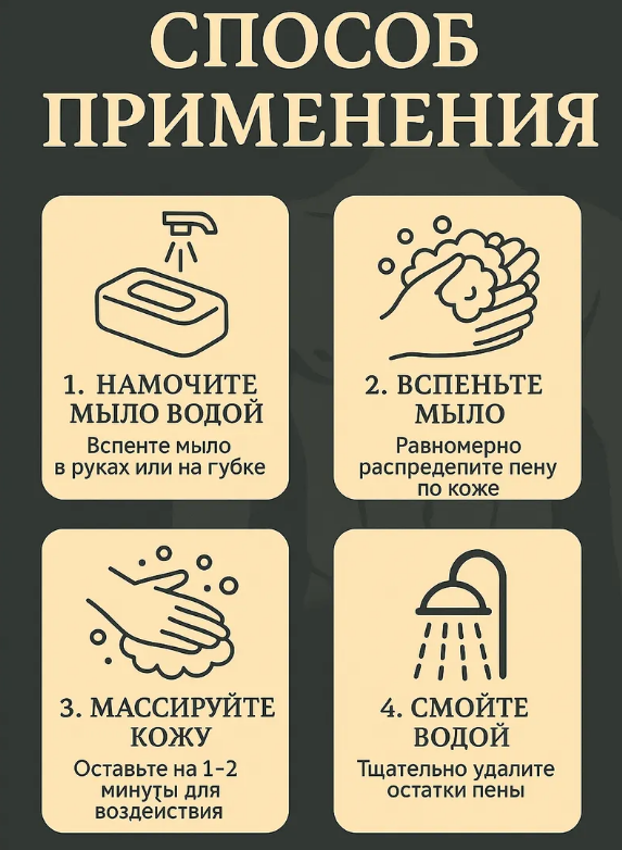 Твёрдое мыло специально разработано для мужской кожи — очищает глубоко, устраняет бактерии и придаёт свежесть без пересушивания. Подходит для ежедневного ухода за телом, руками и даже лицом.