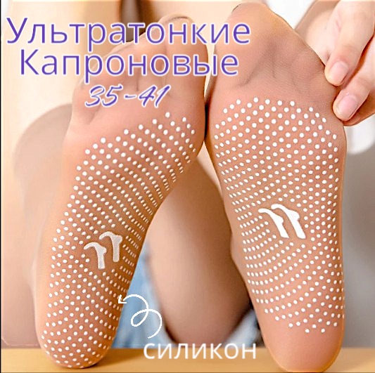Ультратонкие телесного цвета капроновые носки, с комфортной резинкой и силиконовыми "тормозилками"